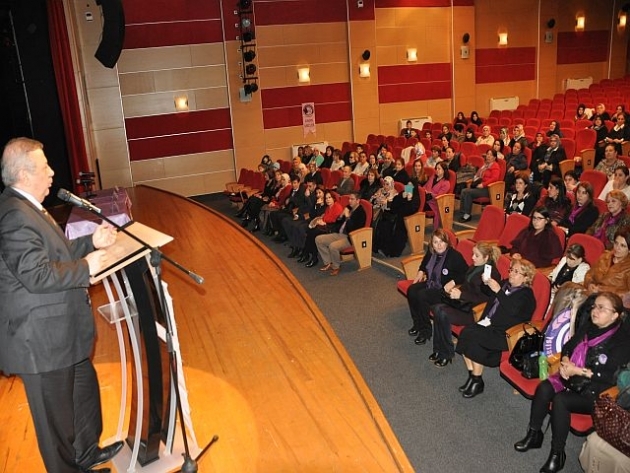 Bahçelievler kültür merkezinde düzenlenen seminerde kadının yaşantısında karşılaşacağı sağlık ile ilgili her türlü bilgi yetkililer tarafından verildiç Plastik Estetik Cerrah Op. Dr. Mehmet Kartal, Kadın hastalıkları doğum uzmanı Op. Dr. Leyla Ercan, Beslenme diyet uzmanı Dyt. Fatmagül Öztürk konuşmacı olarak katılarak kadının yaşantısındaki sağlık konusu bir daha masaya yatırılmış oldu. Kent konseyi kadın meclisi başkanı Fatma Çınar ve yönetim kurulu tam kadro katılırken programın sunuculuğunu Kanal 24 sağlık programı yapımcısı ve sunucusu Meral Karadağ yaptı. Açılış konuşmasında " Erkekler baş tacımız"demesi herkesin taktirini topladı. Osman Develioğlu kadının önemini dile getirirken " Kadın çayın yanındaki şeker gibidir. Kadın ayrılmaz bir bütündür. Kadınların haklarının göz ardı edildiğini görüyoruz." 5 yıl önce yapılan anayasa değşikliği ile kadınların güvencelerinin artırıldığınıda dile getirdi. Kadının eli bir şeye değdiği zaman daha istikrarlı oluyor. İstikla savaşında omuz omuza savaşarak bu ülkeyi bize teslim ettiler.Türk toplumu ana erkil bir topluluktur. Yuvayı dişi kuş yapar. diyerekde kadının kıymetini dile getirdi. Kadına olan şiddetde kınandı.konuşmasında Başkan develioğlu " 365 günü kadınlarımız günüdür.Kadınlarımız olmazsa bu dünya zor geçer." dedi.Bahçeli evler Medicana hastanesi genel müdürü Cemal Çaparuşağı yaptığı konuşmadada kadının hayatımızdaki yerini önmini dile etirdi.Kadın hastalıkları doğum uzmanı Op. Dr.Leyla Ercan konuşmasında 8 mart dünya kadınlar gününün oluşumu hakkında bilgi verdi. Op. Dr. Doğum uzmanı Leyla Ercan "Kadın olarak doğamız gereği güzel ve bakımlı olmak istiyoruz. Değişmeyen tek bir ölçü varki sağlıkdır. Sağlık güzelliktir. Kadın her yaşda güzeldir. " dedi.Plastik estetik cerrahı Op. Dr. Mehmet Kartal'da kadınlardaki kırışlıkları ile getirdi. Yaşlılıkdan korunmanın yolu sağlılı yaşamıtasviye etti. Güneş ışığı, sigara kullanımı, ilkim değişkiliği, hava kirliği gibi sebeplerrin yaşamı ve güzelliği etkilediği söyledi.Beslenme diyet uzmanı Dyt. Fatmagül Öztürk verdiği sağlık tiyolarındada "Hızlıca kilo vermek sağlıklı değil. Sağlıklı beslenmek hayatın kurulı. yaşlamayı durduracak balık, zeytinyağı, baklagilleri dile getirti. Suyu tüketmeyi tavsiyede bulundu. Güne mtlaka kahvaltı ilebaşlanılması gerektiğini dile getirdi. "Kenimize değer verirsek karşıdaki insanlarda size değer veriyor." dedi.Bahçelievler belediyesi kent konseyi kadın meclis başkanı Fatma Çınar kadınlar gününe özel programlarının hafta içinde devam edeceğini dile getirirken "Bu ilk programızla beraber belediye başkanlığımız düzenlediği yarin gerçekleşecek olan 11 salonda eş zamanlı olarak yapılacak kadınlara özel düğün şöleni düzenleniyor. Herkesi bu düğün şölenine davet ediyorum"dedi. Verilen seminer sonunda sanatcı Ahmet Kutlu'nun söylediği şarkılara tüm salondaki kadınlar eşlik ettiler. Program sonunda Kafkas dans topluğunun gösterisi ile son buldu.Seminere gelen herkese ikramda bulunulurken katılımcılara Seminere görme engellilerderneğide katılımcılar arasında yerlerini aldılar.