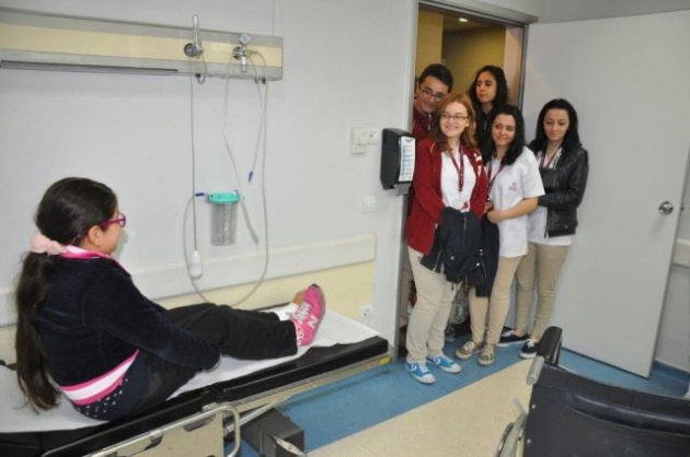 Mektebim Okulları müdürü Arzu Özkul önderliğinde okul öğrencileri , Medicana Bahçelievler Hastanesini ziyaret ederek hayallerinin mesleklerini yakından gözlemleme fırsatı buldular. Öğrenciler, Poliklinik, acil servis, laboratuvar gibi hastanenin pek çok bölümünü gezdiler. Medicana Haznedar Hastanesi Başhekimi Dr. Cem Başaran‘ın ve Medicana Bahçelievler Hastanesi Başhekim Yardımcısı Dr. Yaşar Sezen Oral’ın da konuğu olan öğrenciler, doktorlarla sohbet etme imkanı da buldular. Biyokimya Uzmanı Dr. Nilgün Uzun, Laboratuvar sorumlusu Süleyman Turan, Genel Cerrah Prof. Dr. Hasan Taşçı’ya hekimliğin zorlukları, hekim olabilmek için neler yapmaları gerektiği, branş seçimindeki sıkıntılar gibi akıllarına takılan pek çok soruyu da alanında uzman doktorlara sordular. Giydikleri beyaz önlüklerle kendilerini hayallerine her zamankinden çok daha yakın hisseden öğrencilerin heyecanları gözlerinden okunuyordu.
